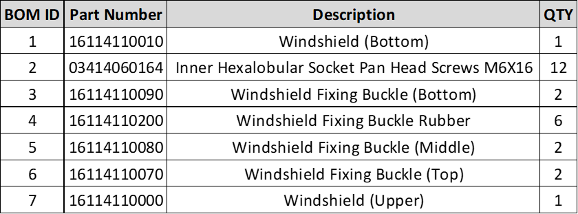 MN1 Windshield Part Assembly