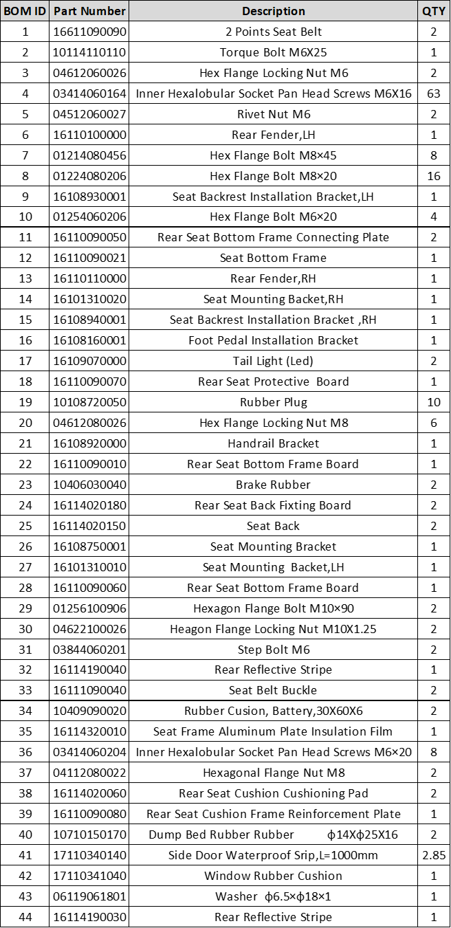 MN1 Back Seat Part Assembly