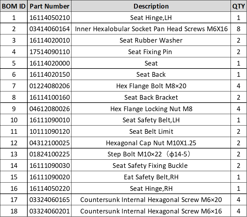 MN1 Seat Part Assembly